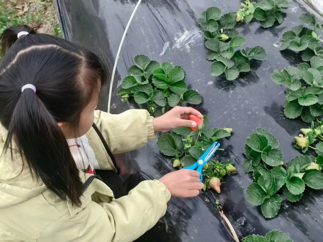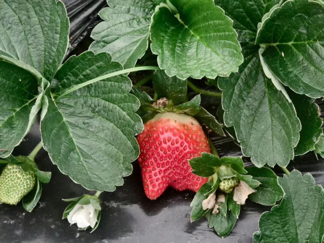 基地主打奶油草莓和法兰地草莓两大经典品种。奶油草莓自带淡淡的奶香味,果肉细腻多汁,轻咬一口,清甜汁水在齿间爆开,浓郁果香裹挟着奶香,回味悠长;法兰地草莓则以果大饱满、色泽艳丽著称,酸甜比例恰到好处,一口下去满是纯粹果香。所有草莓均采用有机肥种植,绿色天然无公害,摘下来就能放心品尝。